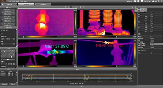 系統(tǒng)具備自動(dòng)巡檢功能,可以在預(yù)定的時(shí)間內(nèi)按照預(yù)先規(guī)定的巡檢行程監(jiān)測所有設(shè)備的工作狀態(tài),利用計(jì)算機(jī)系統(tǒng)的智能方式運(yùn)作,無需看管而自動(dòng)巡測。在巡檢過程中,一旦發(fā)現(xiàn)目標(biāo)設(shè)備溫度異常,超過的預(yù)先設(shè)置的報(bào)警溫度,系統(tǒng)自動(dòng)報(bào)警,存儲(chǔ)設(shè)備工作狀態(tài)熱圖,提示操作人員故障設(shè)備的具體位置信息,以便操作人員馬上排除故障并給出工作報(bào)告。